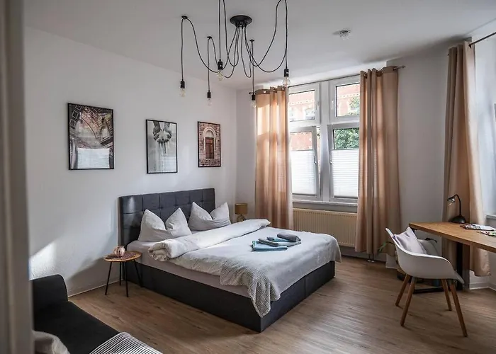 Das 38 m^2 große Boho City Apartment Zentrumsnah Arbeitsplatz liegt nur 25 Minuten Fußweg vom Brühlen Garten entfernt sowie in unmittelbarer Nähe zu verschiedenen Sehenswürdigkeiten der Gegend.